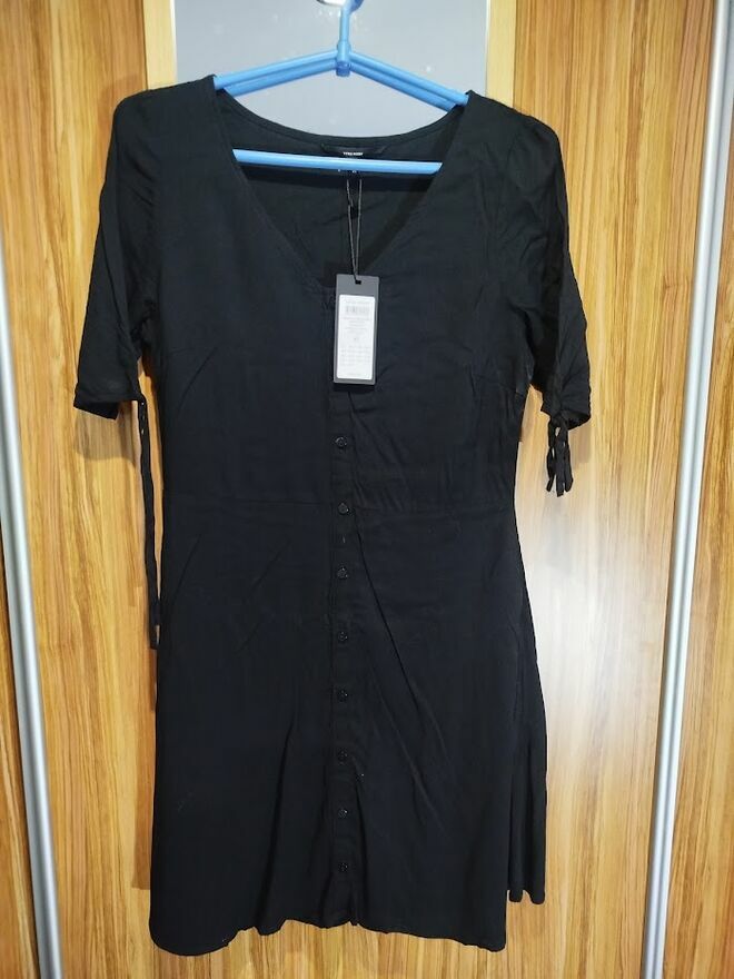 Śliczna czarna sukienka od firmy Vero ModaSukienka zapinana na guziki , posiada wiązania na rękawach
